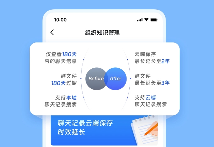 存储打通,直播、音视频会议、聊天记录、钉闪会等统一存储,容量管理更方便