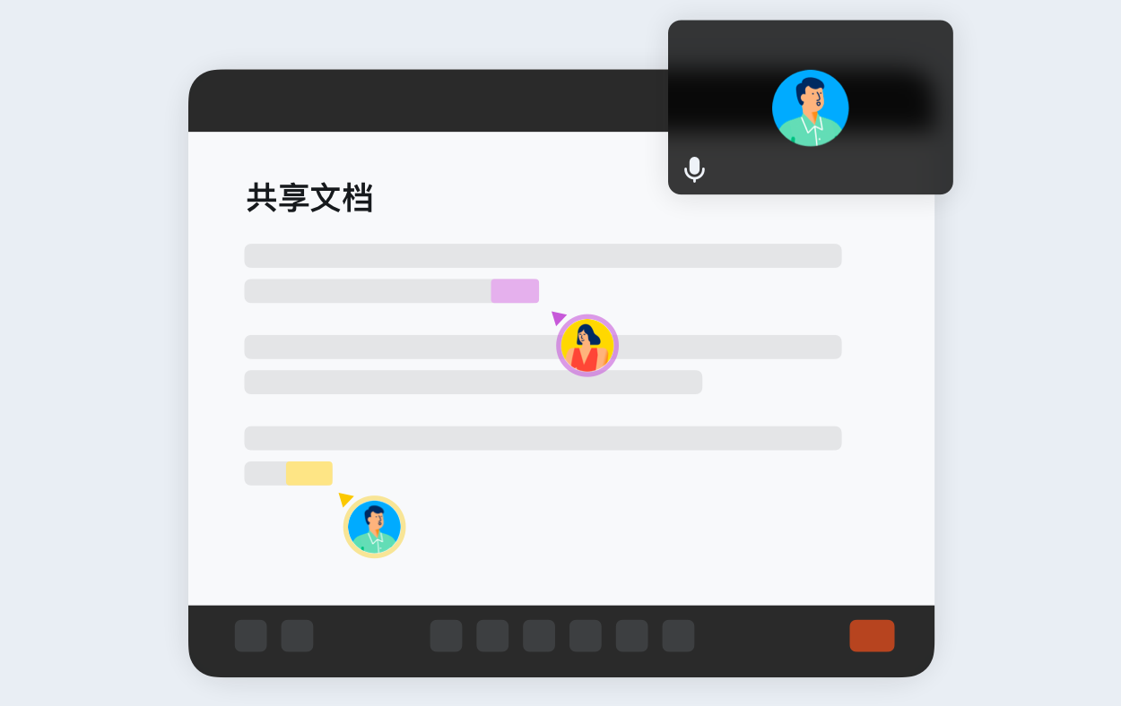 共享文档支持穿屏打开,画面更清晰,参会人可在文档内进行共同编辑