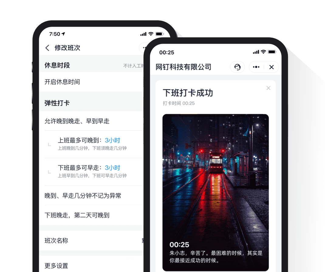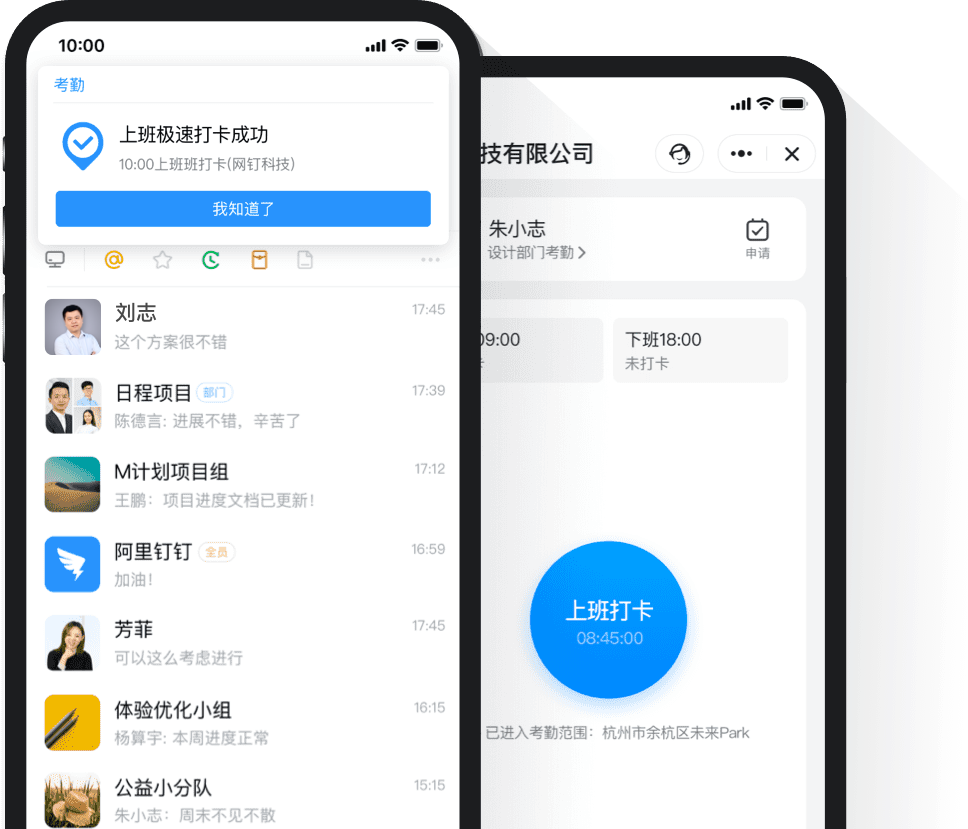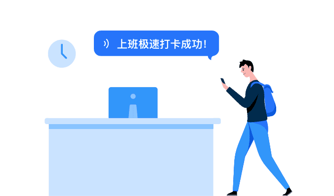 员工人性化考勤上班时间到公司,打开钉钉自动打卡,再也不用担心忘打卡了。