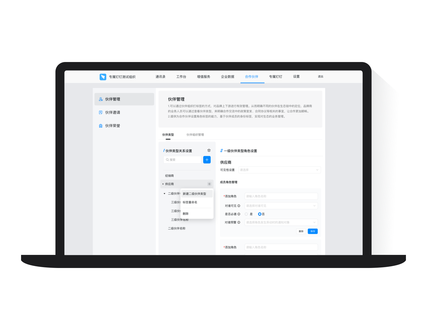伙伴类型设置、批量邀请伙伴