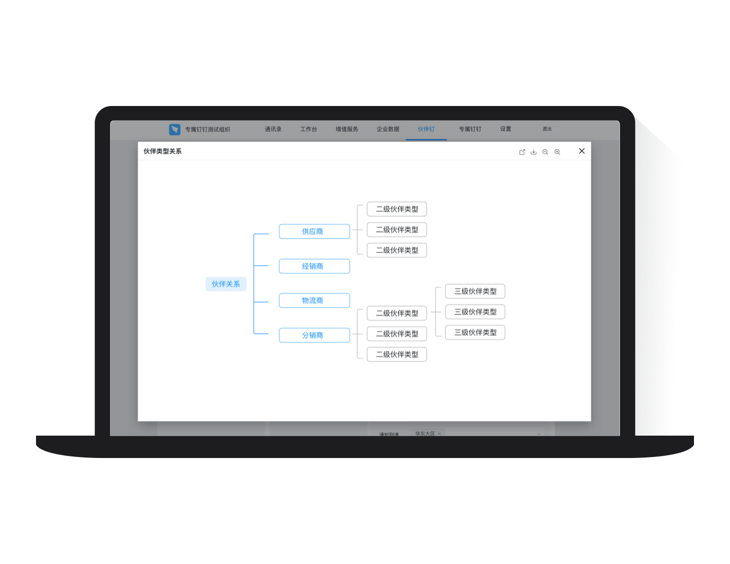 支持一键导出品牌商的上下游组织结构, 伙伴关系一目了然。