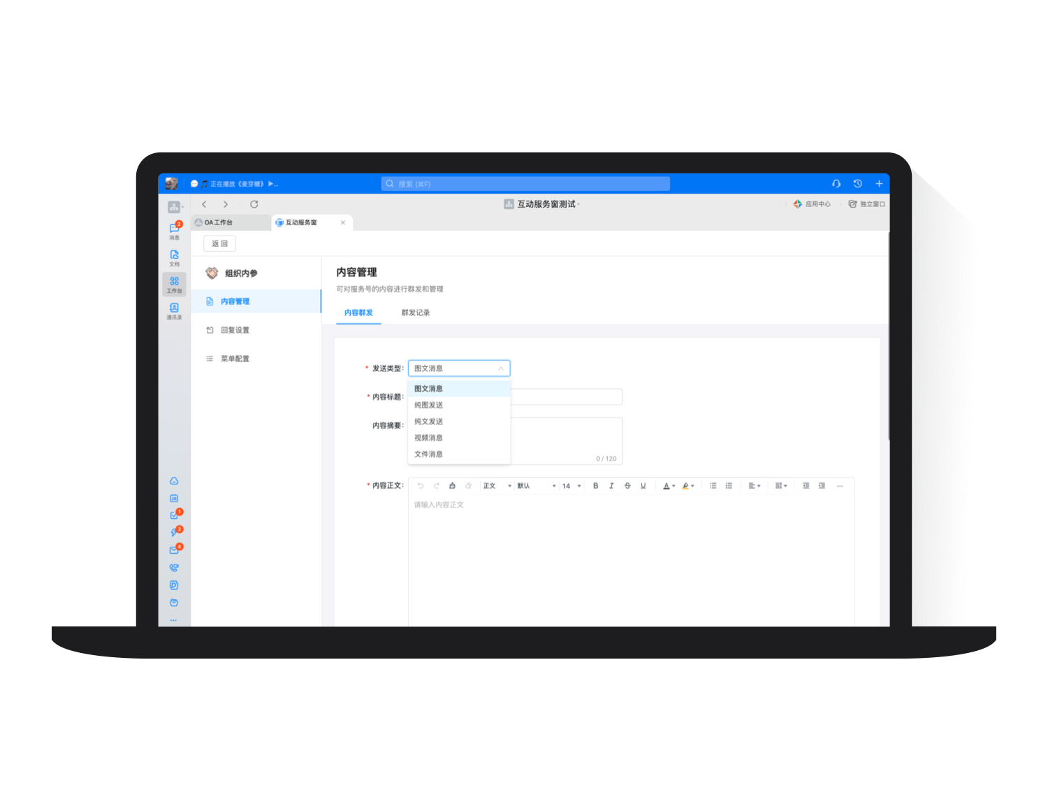 针对不同发送场景及特定人群, 提供不同消息类型。