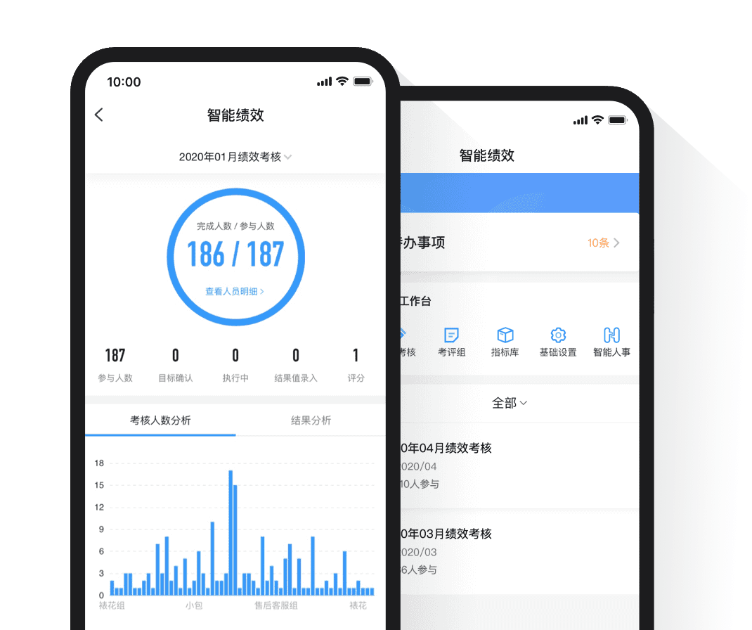 考核管理在线考核、报表可视, 绩效考核赏罚分明。