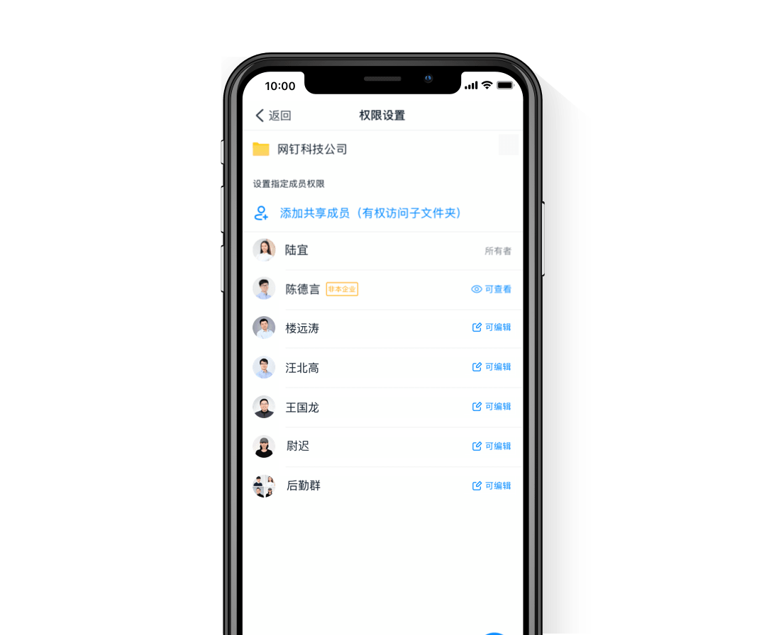 商务合作钉盘文件可安全便捷地对外分享。对外部合作伙伴设置不同的操作权限,商务合作更安全。