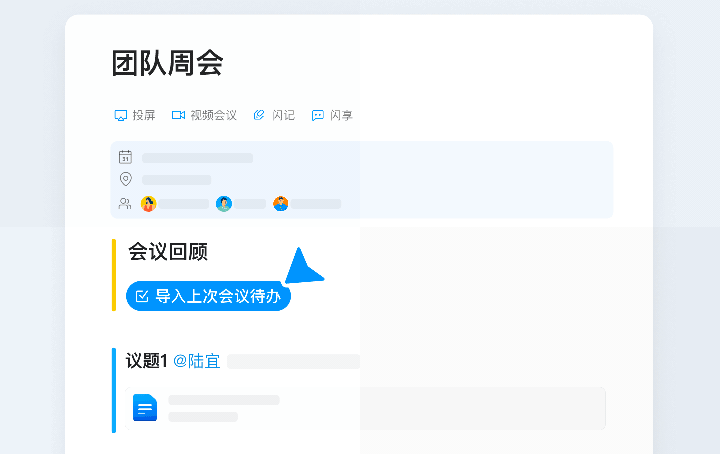 往期遗留任务导入本期会议,快速回顾工作进展。决策先机,始于开会之前
