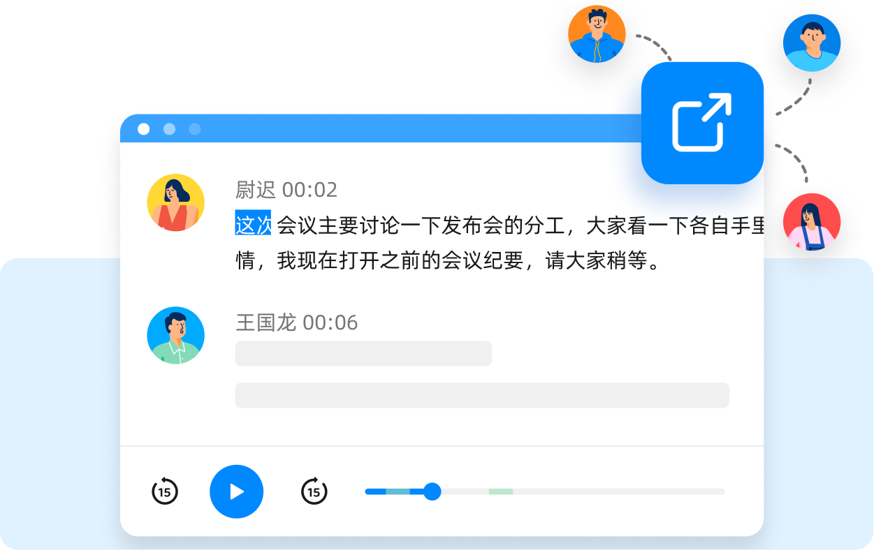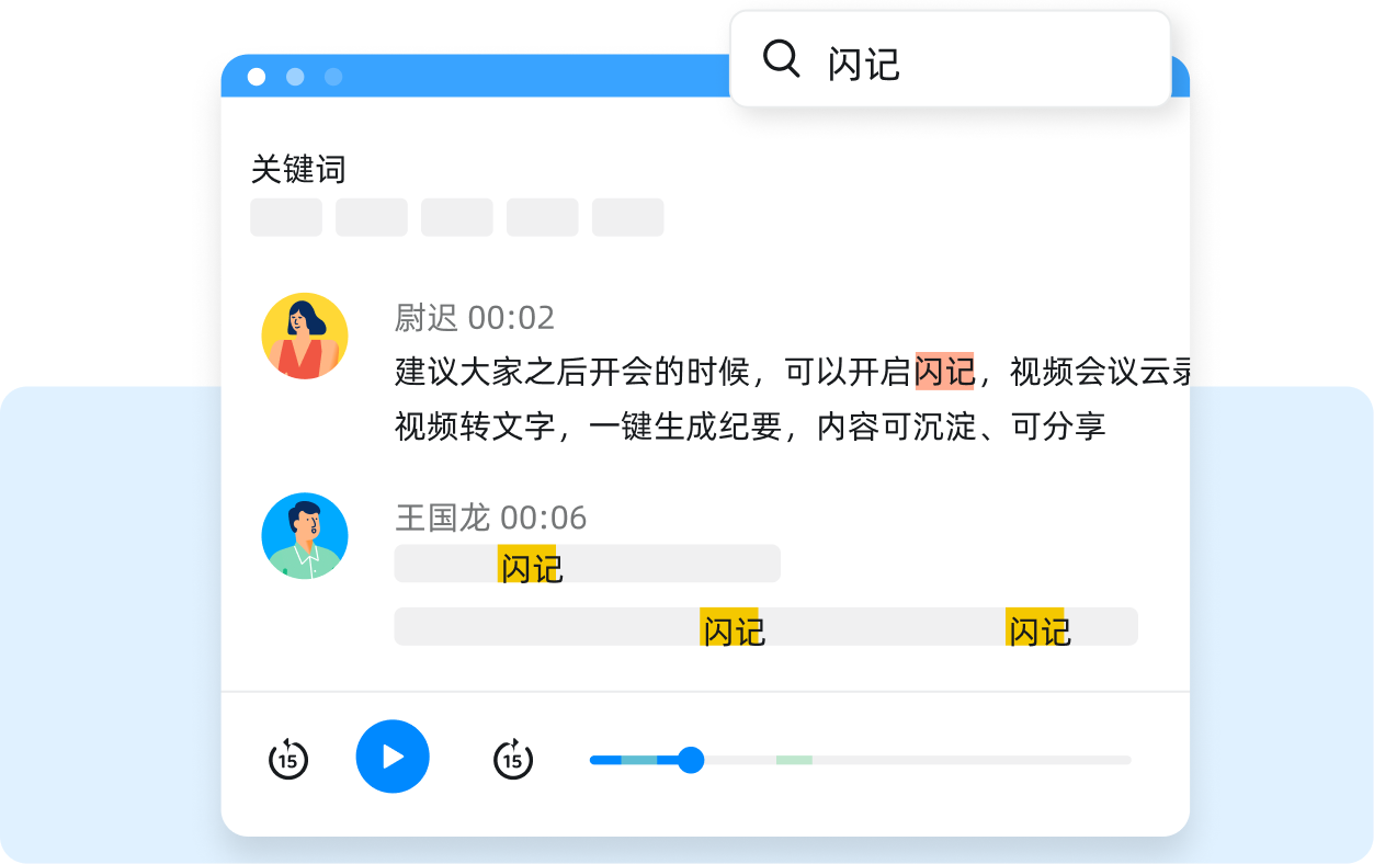 智能提炼会议关键词,语音识别多位发言人,通过筛选、定位,提炼要点内容